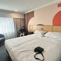 Отель расположен в центре города, что позволяет мне легко исследовать близлежащие достопримечательности как пешком, так и на общественном транспорте. Железнодорожный вокзал, автобусные остановки и станции метро находятся в 5-10 минутах ходьбы. Комната была очень чистой, в ней также было место для мытья собственных чашек и тарелок благодаря раковине для мытья посуды в номере (в дополнение к раковине в ванной). В номере также была микроволновая печь, что было полезно. Хорошая поставка и выбор чая в дополнение к растворимому кофе. Обслуживание номеров с едой тоже было отличным. За последнее время произошла одна из самых быстрых и плавных проверок заезда и отъезда. В целом, очень доволен услугами.