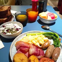 Завтрак совершенно приемлемый. Очень простой выбор хлеба, стандартный бекон и колбаса. Несколько вариантов фруктов, 1 салат и 1 сыр.