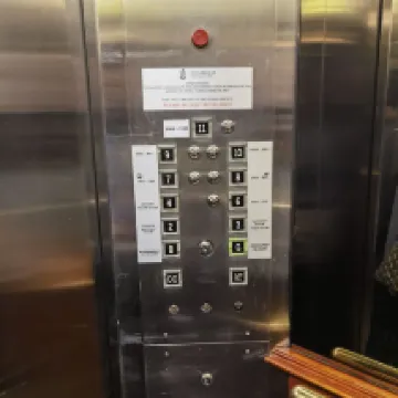 В отеле царит винтажная атмосфера, особенно интересен лифт, ведь для выбора этажа нужно повернуть ключ!