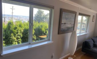 Upstairs apartment unit of a northeast Tacoma neighborhood home with views of the Puget Sound from the living room and primary bedroom.