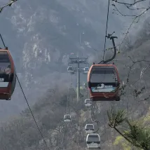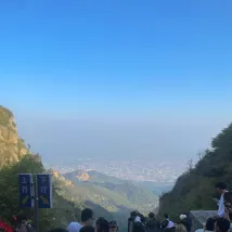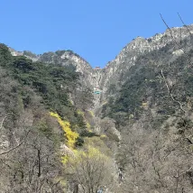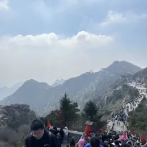 Если вы не в хорошей физической форме, рекомендуется сесть на автобус из деревни Тяньвай до Чжунтяньмэнь, а затем по канатной дороге от Чжунтяньмэнь до Наньтяньмэнь. Те, кто покрепче, могут начать прямо с красной двери. Всем веселья.