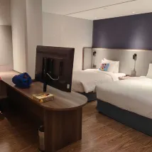 В номере чисто и аккуратно. Также есть робот для доставки еды. Расположение очень удачное.