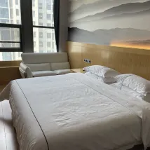 Остановился в отеле на 2 две ночи. По предварительной записи работает трансфер со станции Тайаня. В целом отель за свои деньги хороший как везде в Китае где мне приходилось жить. С 22 этажа вид мог бы быть и получше но это и не Шанхай. В номере было все что нужно но мыло для хотелось бы жидкое. Кровать просто нереально большая. Телевизор с субтитрами. На ресепшене помогли закинуть деньги на вичат и заказать посылки на адрес отеля.