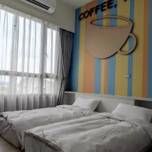 服務:因為我們行程關係入住時間比較晚,先致電過去告知~老闆人也很nice;幫我線上辦理入住,線上選早餐還有進門密碼皆有:) 設施:這部分比較可惜,頂樓本來可以看摩天輪🎡但好像因為蓋了新建屋,導致沒有這景色了,剩下陽台抽菸的功能了(我也不抽煙😆) 餐點:早餐是漢堡~有紫色漢堡選擇,很特別也好吃😋 去麗寶樂園玩,這個好選擇;經濟又實惠~ 隔音也很好👍水也夠熱~吹風機也超好吹的♡