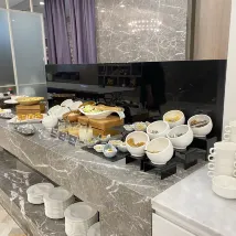 Завтрак очень хороший. Здесь много горячих блюд, приготовленных опытным поваром. Официанты очень дружелюбны и очень полезны.