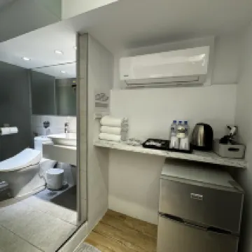 Good experience. Right smack in the middle of Raohe Night Market. Had a small fridge with freezer compartment. Ideal stay for solo or couples