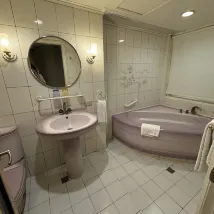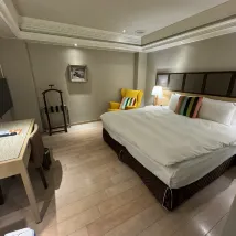 Размер номера был довольно большим по сравнению с другими, расположение хорошее, так как он находится недалеко от железнодорожного вокзала и SOGO. Персонал дружелюбный, и они предлагают закуски и напитки в лобби, но иногда, возможно, придется давать 5-звездочные отзывы, чтобы насладиться этим. Номера немного старые и обшарпанные, но в целом все работает и хорошо, учитывая цену.