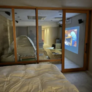Номер просторный. В отдельной комнате есть палатка с проектором и системой объемного звучания, чтобы вы могли бесплатно пользоваться Netfix. Также в холодильнике много бесплатных напитков. Вы также можете купить говядину в близлежащих магазинах или супермаркете, чтобы приготовить ее в номере. Выбор завтраков ограничен, но эксклюзивен, с якитори и блинами по заказу. В целом этот отель настоятельно рекомендуется для семейного проживания.