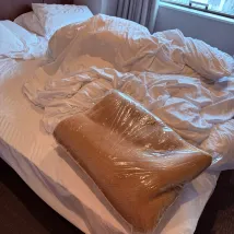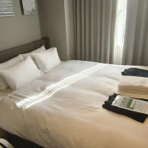 Хотя я по собственной неосторожности забронировал номер на другую дату, я заплатил дополнительную плату за номер. Однако при заселении обнаружил в сумке брюки, которые использовал предыдущий постоялец. Необходимо улучшить гигиену.