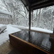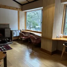 Это невероятно чистый и романтичный отель с горячими источниками! Персонал приготовил нам столько сюрпризов! Сначала я сказала мужу и нам, что приехала отметить день рождения, и при входе нас встретили с открыткой и талисманом! А вечером, за ужином, персонал принёс нам фруктовую тарелку, торт и свечи, а мы даже не заметили! Я была так тронута, что чуть не расплакалась! Это было потрясающе! Снежные горячие источники просто потрясающие, а вечером там предлагают бесплатный рамен. Обслуживание тоже было отличным: бесплатный чай, кофе и мороженое. А самое приятное – бесплатное молоко Хида! Оно есть только здесь! Я обязательно вернусь! Спасибо всем, кто так заботился обо мне!