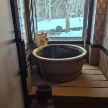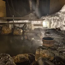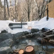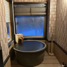 Есть 2 открытых частных ванны и 2 закрытых частных ванны. Бронирование не требуется, и вы можете войти, даже если там никого нет. В месте, где расположена открытая ванная комната, слишком холодно, а по всему коридору гостевой комнаты дует ветер, а сам коридор затянут пластиковой пленкой. Для сравнения, зона, где расположена внутренняя ванная комната, намного теплее.