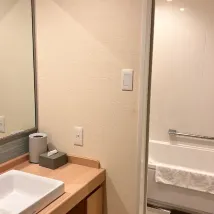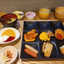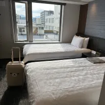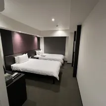 Отель очень новый и удачно расположен. Автобусная остановка JR находится всего в 3 минутах ходьбы. Мы забронировали номер с двумя кроватями, и комната оказалась огромной, больше любой другой японской гостиницы, где я останавливался раньше. После выезда можно оставить багаж. Вокруг много ресторанов, и ресторан при отеле тоже очень хорош. Завтрак действительно стоит своих денег, а вечером предлагают бесплатный чай с рисом. Также есть часовой безлимитный напиток за 1500 иен.