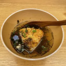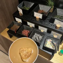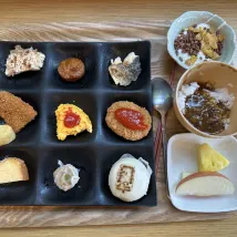 Завтраки тоже были очень вкусными, предлагались различные блюда из говядины вагю – просто объедение. По вечерам ещё можно бесплатно перекусить тядзукэ, а после принятия термальных ванн съесть мороженое с тядзукэ – это так приятно!