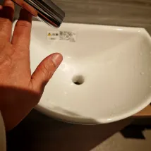 В 21:00 будет предоставлен бесплатный рис, замоченный в чае. Я остановился в улучшенном двухместном номере, который был очень просторным и имел диван. Как показано на рисунке, есть две независимые раковины с разделением на сухую и мокрую части, но есть только один флакон мыла для рук, что немного неудобно.