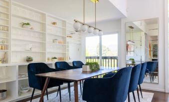 Nestled in the shadow of Mt. Tamalpais, the property overlooks the green pines of Tamalpais Valley. A perfect retreat to enjoy Northern California's charm. Take in the view from the deck shaded by a large Redwood. Catch hints of ocean air from Sausalito’s Richardson Bay a mile East & Muir Beach and the Pacific Ocean 4 miles West. Day-trippers will find themselves with too many options. Be in San Francisco or Muir Woods in 15 minutes, or the tasting rooms of Sonoma’s Gloria Ferrer in 35 minutes.