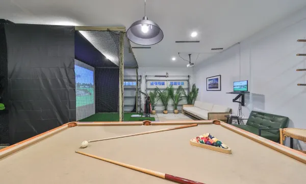 🕹️ Huge game room with Full Sized Pool Table, arcade games, foosball, and golf simulator