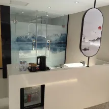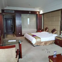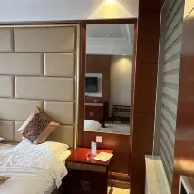 Давайте сначала поговорим о преимуществах: комната большая, кровать большая, а на стойке регистрации хорошее отношение. Говоря о недостатках, номер слишком старый. Когда вы входите в дверь, кафельный пол выглядит как строительная площадка, а одеяло влажное. Я делаю предложение: Разве это не пятизвездочный отель? Почему у двери нет встречающего? Когда я туда приехал, в Таншане шел сильный дождь. На платформе перед отелем была припаркована машина. "Я медленно убирал вещи в машине. Такси, которое я взял, остановилось. Я не смог сесть за него. Прождав несколько минут под дождем, машина впереди не выказывала намерения уезжать. Наконец, я достал чемодан под дождём и побежал в отель.У дверей увидел красивую женщину... Мужик, я просил тебя принести зонтик и отнести его.Войдя, я всё время извинялся и говорил, что мне надо взять зонтик.Отношение к обслуживанию было действительно хорошим, и мне было слишком неловко, чтобы что-либо сказать.