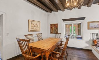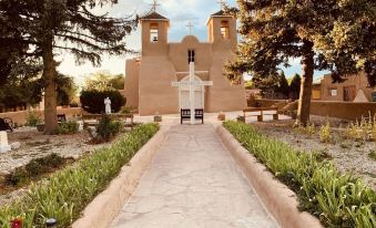 The quin essential adobe home complete with Viga's, Kiva fireplace and the comforts of home. Walking distance to the famous San Francisco de Asis Mission, shops and restaurants you will find that you have the perfect combination of a rural setting close to town...15 min drive in either direction hike to the Rio Grande or in the mountains for an Alpine forest experience. We have a hot tub, swim at your ownriskAbout pets:No pets allowed.About checkOut:Check out before 11:00 AM.About children:Adults only.About checkIn:Check in after 4:00 PM.About smoking:Smoking is not permitted.About events:No events allowed.