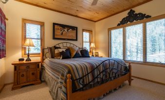 Our Ponderosa Valley log cabin home offers 4 bedrooms / 3baths / sleeps 12. Located in the Upper Valley, Ponderosa Valley offers guests both WiFi and satellite TV. 4WD is REQUIRED to access the driveway during the winter months.