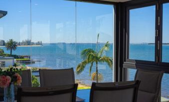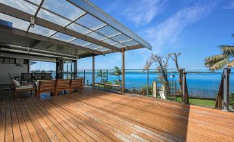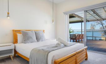 This architecturally designed property offers sweeping views of the river, creating a perfect waterfront retreat. The spacious master bedroom features breathtaking water views, a stylish ensuite, and direct outdoor access, ensuring a serene and comfortable stay.