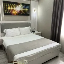 Чудесный отель в Ташкенте!Есть все необходимое:очень удобная кровать,балкон,набор средств гигиены в душе,мягкие пушистые полотенца,диванчик со столиком.Совсем недалеко от аэропорта,масса мест рядом для перекуса,торговый центр Next в шаговой доступности,супермаркет Корзинка!Хорошие завтраки:есть горячие блюда,закуски,выпечка,фрукты,кофе,чай.Отдельное спасибо персоналу отеля🙏Работают отличные парни!Много раз помогали нам в наших просьбах!Огромное спасибо за все!Процветание Вашему бизнесу!😊🙏❤️