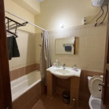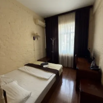 Забыл сделать фото, а очень хотелось подкрепить свой отзыв визуальными материалами. Всё, очень, очень пошарпанное и в плохом состоянии. Из двух бра работал один. Туалет не надёжно закреплён, как и смеситель в раковине. В комнате обшарпанный ламинат на полу, и кровати также обшарпанные. Телевизор номинально присутствует, но отсутствует пульт от приставки, приходил на ресепшн за пультом, обещали принести, но так никто не принёс. Хлипкая входная дверь которая пропускает все звуки с коридора. Поблизости есть более достойные отели практически за ту же цену. Однозначно не рекомендую.