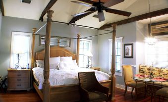 Heron's Retreat sits creekside with a gently flowing creek immediately off the back porch and walking trails that wind through the tree hammock and down to the river. It is important to note of the eight honeymoon cottages, ONLY the creekside cottages have back porches that offer a view of the creek and walking trails.