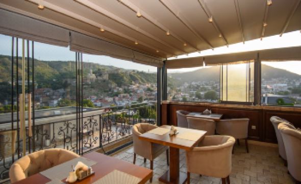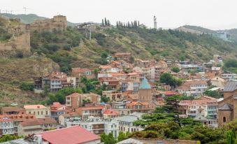 Отличный вид с балкона, располржение - 4 минуты пешком от метро Авлабари, и там же остановка 337 автобуса от аэропорта и обратно. Совсем рядом нижняя конечная фуникулёра, 2,5 лари и вы наверху, спуск пешком очень красивый.