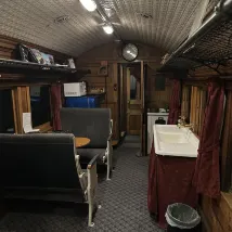 Это очень интересное размещение. Нам предоставили вагон поезда — да, переделанный вагон — довольно необычный.
