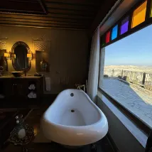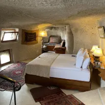 Настоящий пещерный отель с очень красивой природой и хорошим обслуживанием. Однако я бы предпочел отель без пещеры. Свет очень темный и немного душный. Даже такой человек, как я, чувствует, что комната немного непригодна для проживания.