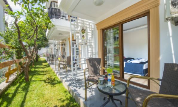 Отличный отель, чтобы открыть для себя необычную Турцию. Здесь нет алко или анимации, но есть спокойный отдых, деревенская живность, хозяйская душевность и гостеприимство. На завтрак - шведский стол+арбуз+кофе; на ужин - салат, суп-пюре, второе из курицы с гарниром, бутылка воды, чай из самовара с порционным десертом. В воскресенье - рыба. Пляж - налево от входа и вниз до Кайлайни, лежак от отеля за 100 лир. Идти 10-15 минут. Дно каменистое. Направо от входа и вверх - по вторникам рыночек. А так отличные супермаркеты А101 и Шок, вверх еще один Шок и Миллениум. Владелец отеля говорит по-русски. Остальные члены семьи - Инглиш. Еды не так много, как в 5*отелях, но всё достойного уровня. Номер крошечный, но на двоих вполне хватало, чтобы переночевать. С балкона - чудесный вид на гору. Из нюансов: в отеле 8 кошек и одна собака, живущие полной жизнью) На выходные отель заполняется турками, которые курят везде. В целом отель очень хороший, если воспринимать его как поездку в турецкую семью, где вы не будете придираться к каким-то техническим недостаткам. Вы будете отдыхать в деревне, вкусно питаться, плавать в теплом чистом море, слушать пение муэдзина, крики петуха и любоваться горными пейзажами. Спасибо владельцам отеля за наш чудесный отдых. P.S. Соседний отельчик Le Marden тоже принадлежит этой семье, там более современный бассейн и живучий интернет.