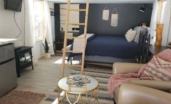 As explained above, our Accessory Bunkhouse -Sleeping Quarters may be added after the fact to a existing reservation at $100 additional per night (plus Vrbo fees). The Bunkhouse will sleep an additional 4 guests in two queen beds. The restrooms in the cabin will need to be shared but we have a water dispenser for coffee, etc. It also has a fold-down dining table, TV with Blu-Ray player, a loft and a wood-stove styled heater. It is ideal for a glamping experience, over-flow sleeping, Artist Studio, etc. We do not allow children under 16 to sleep unattended in the Bunkhouse.