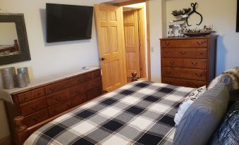 The fee shown is for the cabin with 3 bedrooms - 2 Queens and a King bed with sleeping for 3 couples or 6 adults (we do have a cot). Vrbo automatically bills for our Sleeping Quarters - Bunkhouse if you have 7 or more guests at booking. It has two queen beds in an open area - short loft. It is suitable for a family of four. The Bunkhouse can be optionally added as a 4th bedroom if guests need separate arrangements (you will need to request that, please). The fee is $100 per night if added as an option.