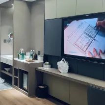 Отель расположен в коммерческом районе, неподалеку от различных торговых центров, что обеспечивает удобный доступ к магазинам и ресторанам. Удобства отеля новые и полностью укомплектованы, имеется множество удобств для людей, таких как роботизированная доставка еды, беспроводная зарядка мобильных телефонов, прикроватные светильники, умные туалеты и т. д. Внутренние и общественные помещения чистые и опрятные. Пространство в комнатах разделено разумно. Завтрак обильный. Сотрудники стойки регистрации приветливы и внимательны, они отличаются высоким уровнем обслуживания.