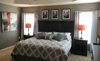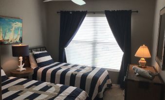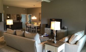 You'll feel welcomed and relaxed as soon you open the front door to your home away from home. This home is beautifully decorated with comfort in mind and boasts a bright open floor plan. The kitchen is fully equipped with everything you need to prepare meals or entertain new friends. Enjoy a quick bite in the morning while planning your day sitting in the nook. The living room offers plenty of comfortable seating to enjoy your favorite television shows on TV. The master bedroom has a king size bed, TV, walk-in closet, and a private master bath with a Roman-style walk-in shower & His & Hers vanities. The 1st guest bedroom has a queen size bed while the 2nd guest bedroom has 2 twin size beds for your guests to relax & enjoy. The bedrooms and both bathrooms are set up with extra towels and linens. In the evening, head out to your private lanai which is perfect for enjoying your morning coffee while reading the paper and planning your days activities or relaxing & grilling with new friends before heading off to the squares to enjoy an evening of FREE live entertainment.