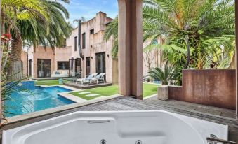 The pool, spa and garden area are surrounded by a high stone wall which makes our home extremely private. We have a built in BBQ , comfy outdoor couches on all balconies/ patios.