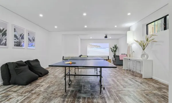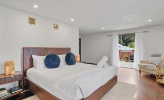 We have four bedrooms with comfy new mattresses and high end linens. Also two other sleeping areas, a queen pull out couch in the movie theater room with its own bathroom, as well as two single beds in a small room off the living area overlooking the pool and private walled garden.