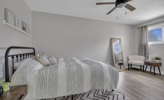 This 5-level backsplit offers 4 bedrooms, 2 bathrooms, an office space, full dining room and kitchen and two living spaces. You have the entire home, free parking and full use of the large backyard!About pets:Pets allowed: limit 2 total.About checkOut:Check out before 11:00 AM.About children:Children allowed: ages 0-17.About checkIn:Check in after 4:00 PM.About smoking:Smoking is not permitted.About minBookingAge:Minimum age to rent: 18.About events:Events allowed: family gatherings and birthday parties.Maximum event attendees: 20.