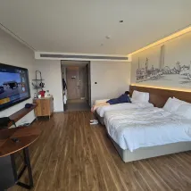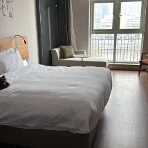 Чистота: Номер был безупречно чистым. Я случайно уронил свою свежевыстиранную белую рубашку на пол, и она даже не испачкала её. Тётя Ян из отдела уборки была особенно приветлива и полна энтузиазма, делая всё возможное, чтобы помочь нам, незнакомым людям, проходившим мимо. Благодаря ей мы почувствовали себя как дома!
