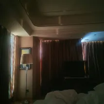 Шторы были огромными и тяжёлыми, но не электрическими, и плохо блокировали свет.