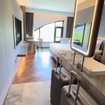 Номер был чистым и аккуратным, оформлен в теплых тонах, а постельное белье удобным, что позволило нам хорошо выспаться после утомительного дня. Помещение оборудовано всевозможными смарт-устройствами, пользоваться которыми очень удобно. На завтрак предлагается широкий выбор блюд китайской и западной кухни, а свежеприготовленные вонтоны очень вкусны.