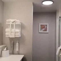 We stayed here for a week and we had very comfortable stay throughout the week. Room is spacious and comfortable with a small pantry provided in room, a small living room, modern bathroom and very comfortable bedding. We didn’t take the complimentary breakfast every morning after trying once. There were sausages, eggs, waffles, breads, fruits and juices. I really like the round the clock drink station for the guests convenience. Finally the toiletries provided smelled so good and of good quality. I would happily return to this hotel.