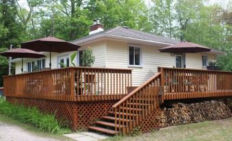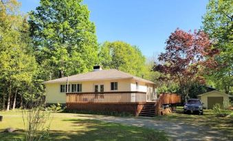 ***NEW LISTING*** 4 season cottage, 5 min walk to beaches. Approx 1300sq. feet including 3 bedrooms and 1 large bathroom. Accommodates 6-8 Comfortably. Large Wrap around deck with outdoor furniture and greenery provided and BBQ Area to keep you relaxed and at home. Outdoor fire pit available. Situated on a private lot surrounded by nature. This getaway is equipped with everything you need. *Superhost* status on another short-term rental program.