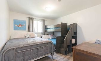 Your kids will love the playground and climbing structure on site for outdoor fun during the day. Relax on the hammock or enjoy the 3-person swing while they run around the large yard.