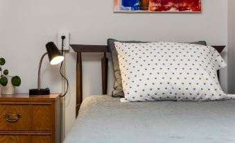 The property is an early 20th Century bungalow that has been beautifully restored to its original glory (and then some!). The decorator's taste is absolutely divine, with a wonderful blend of mid-century bright colors and pastels. In addition, the living room and downstairs sitting can be easily turned into sleeping accommodations for additional guests in your party.