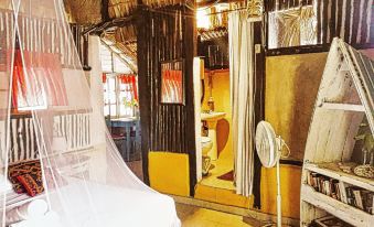 Nestled among the palms on the 3rd floor in a typical Mayan Palapa , the Casa Maya Lodge ( 250 ft, 22m2 living space) with a palm roof, shower , kitchenette and private beachfront terrace (200 ft, 20m2) for 2 guests. We recommend that Lodge with fabulous views of the sea and the beach for adventurers and people who appreciate the simple and natural life ala Robinson Crusoe.
