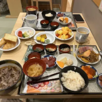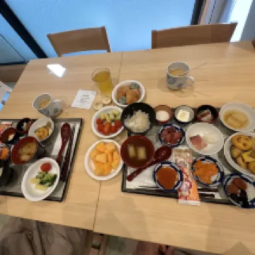 Великолепный отель с прекрасным соотношением цена/качество и с множеством дополнительных услуг, включенных в базовый набор. Номер небольшой по площади, но очень удобный и дорого экипированный техникой. Очень профессиональный и дружелюбный персонал, говорят на английском все, некоторые ещё и на китайском. Отличная зона горячих источников: холодные и горячие ванны от 15 до 42 градусов, сауна на 90 градусов, косметика, фены. Вечерняя бесплатная порция собы и мороженное — приятное дополнение к расслаблению в бане. Утром — бесплатные молочные напитки с пробиотиками. В лобби всегда работает кофемашина. Очень вкусный завтрак за отдельную плату, около 20$ на человека. В ресторане за такой набор блюд можно отдать 100$. Чего стоит хотя бы безлимитная красная икра и свежие тунцовые кубики. Не хватило только вида из окна, но такова, видимо, специфика многих японских отелей. Расположение отличное, до храма Сэнсодзи 300 метров, вокруг много кафе, ресторанов и магазинов, от маленьких до больших.