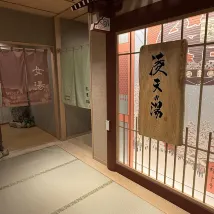 Хотелось с ребёнком пожить в отеле в японском стиле – недалеко от достопримечательностей, но при этом в тихом месте, с множеством магазинов, заведений питания и близостью к метро. В итоге мы выбрали этот онсэн-отель с хорошими отзывами.