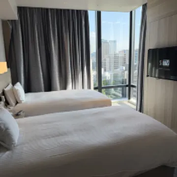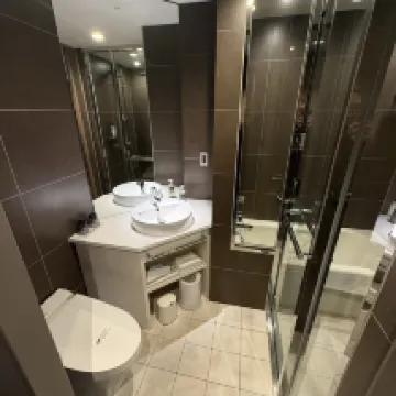 Удобное расположение, очень близко к станции метро Tsukiji. Обслуживание на стойке регистрации очень быстрое и эффективное. В лифтовом холле есть общий микроволновая печь, а туалетно-косметические принадлежности можно взять на стойке регистрации — это очень продуманно. Все банные принадлежности известных марок (например, Sekkisei, L'Occitane), что очень приятно. Двухместный номер, который я забронировал, показался мне нормальным по размеру, к тому же там было разделение на сухую и влажную зоны. Однако одноместный номер, забронированный для ребенка, показался слишком маленьким — после открытия чемодана пройти было невозможно. Действительно, в одноместном номере не нужна такая большая кровать.