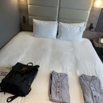 Забронированный нами на этот раз номер на третьем этаже оказался значительно меньше, чем в прошлый раз. Планировка также неудобна. Стиральных машин слишком мало: всего две для стирки и две для сушки. При этом они не являются комбинированными (стирка+сушка), и оплата за каждую услугу по отдельности очень дорогая. На стиральных машинах нет замков или блокировок, и если не забрать белье сразу после стирки, его могут открыть другие люди. Это крайне неудобно! На одеяле была этикетка о чистке, которую даже не убрали!